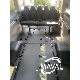 La transformación de furgones Ford Transit para uso escolar en Tapicería Maval incluye una configuración óptima de 6 corridas de asientos: 2 corridas para 5 pasajeros y 4 corridas para 4 pasajeros, logrando una capacidad total de 26 asientos escolares. Con los asientos del copiloto y el conductor, la capacidad total se amplía a 28+1 pasajeros, maximizando el espacio sin comprometer la seguridad.